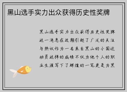 黑山选手实力出众,获得历史性奖牌,这一消息在近期引起了广泛的关注与热议。作为一名来自黑山的小国运动员,这样的成绩不仅为他个人的职业生涯写下了辉煌的一笔,更是为黑山这片小小的土地带来了无可比拟的荣耀。