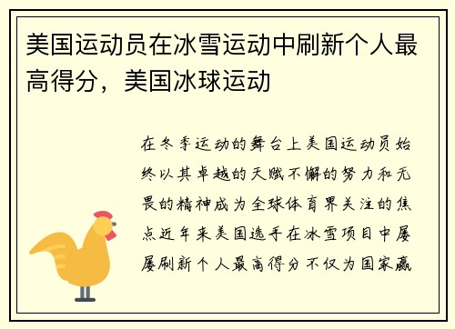 美国运动员在冰雪运动中刷新个人最高得分,美国冰球运动